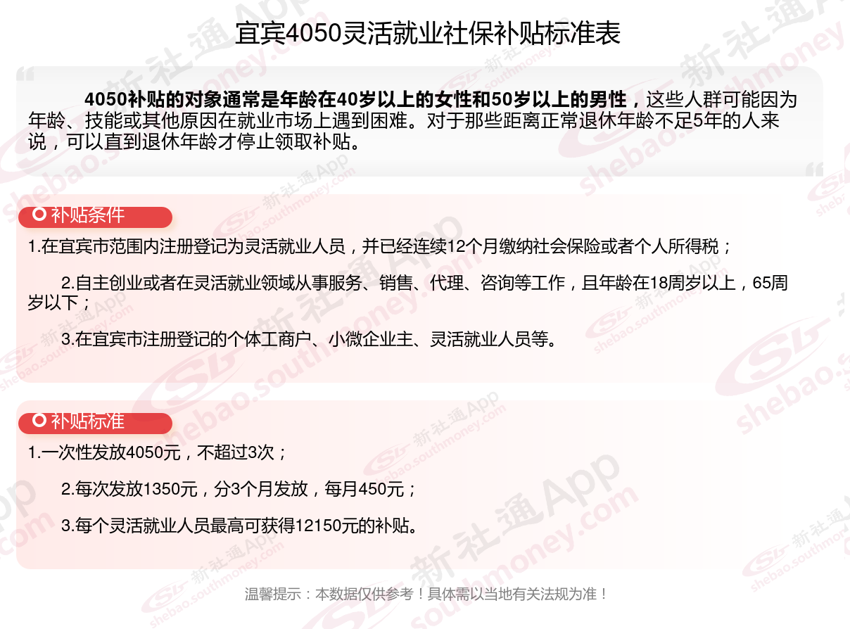 一、宜宾4050社保补贴标准及条件2023-2024年
