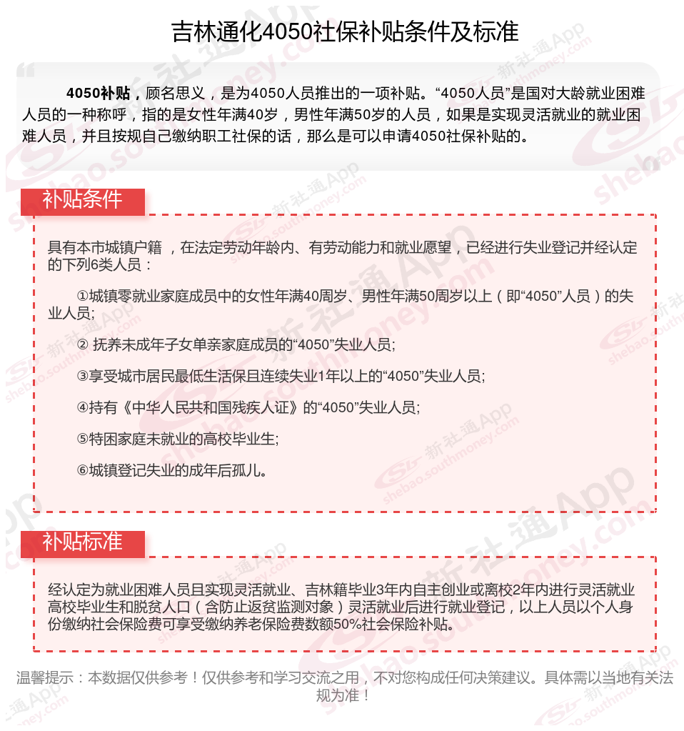二、吉林通化4050社保补贴标准及条件2023-2024年