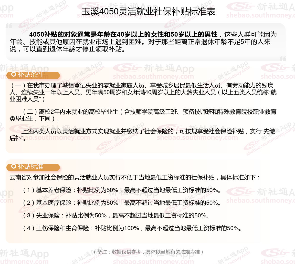 二、玉溪灵活就业4050社保补贴标准及条件是什么