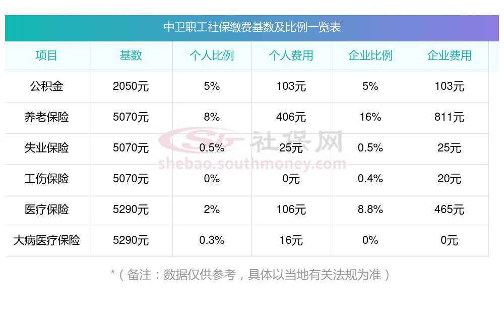 中卫社保缴纳情况是怎样的?一起和社保网小编一起来看看下面的明细表: