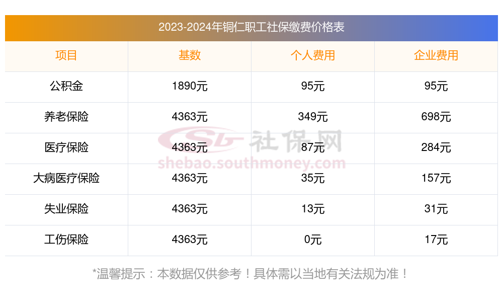 贵州铜仁缴费社保比例一览 社保公司和个人各交多少?下表是2024-2025年贵州铜仁社保费用明细参考,新社通app-社保缴费查询工具提供的最新数据如下: