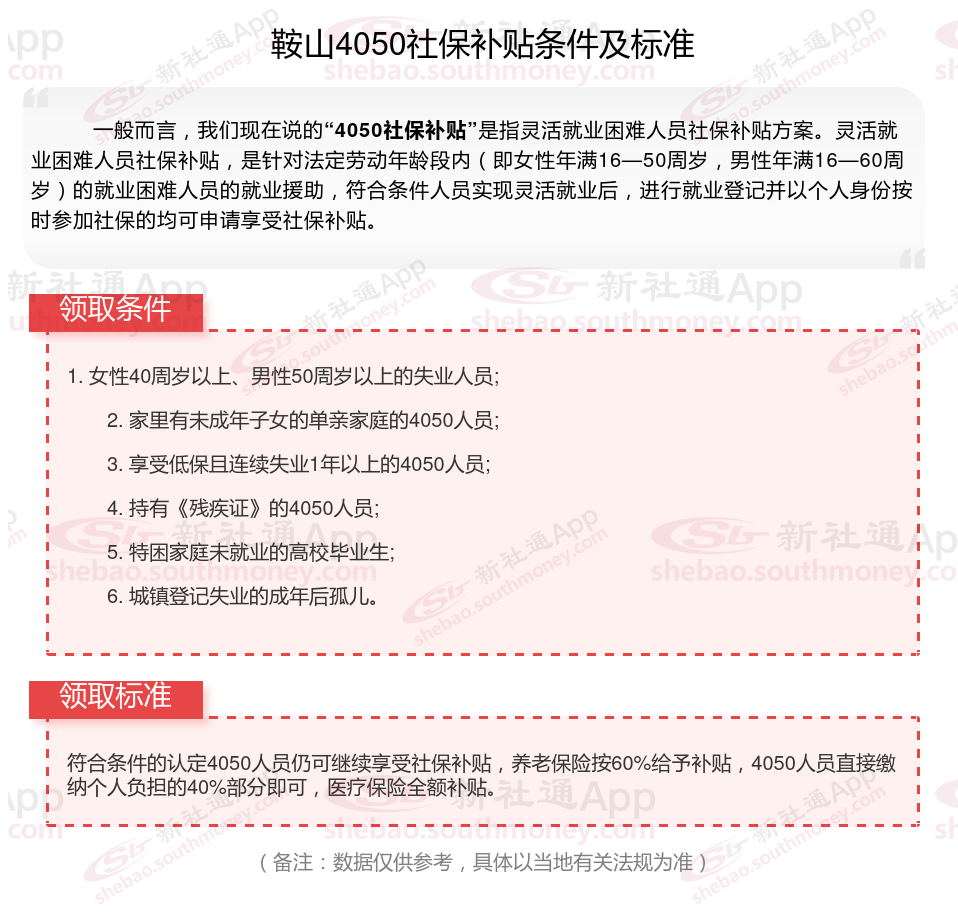 一、鞍山4050社保补贴标准及条件2023-2024年