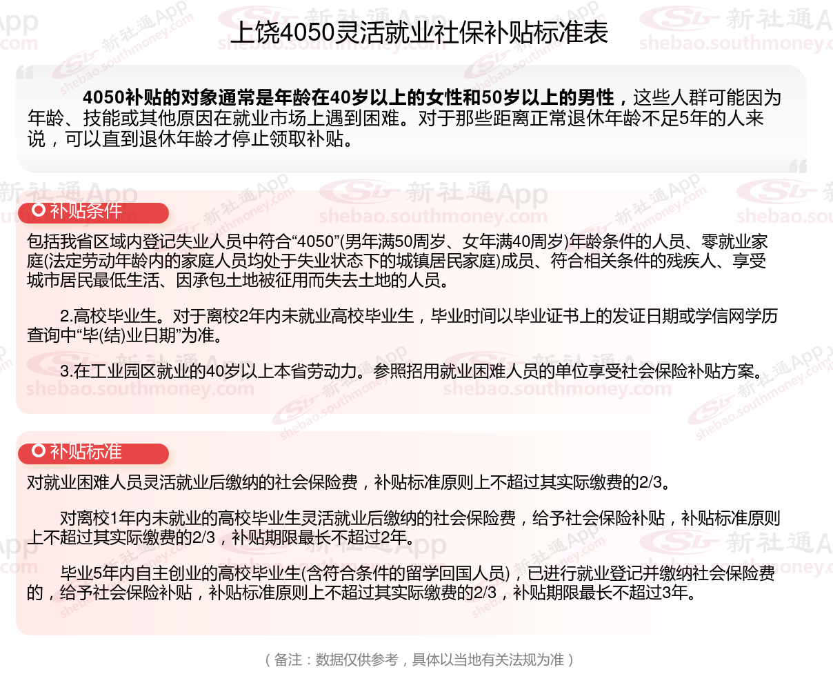 2025上饶4050补贴主要针对的是年龄在40岁以上的女性和50岁以上的男性,这些人群通常因为年龄较大而面临就业困难。