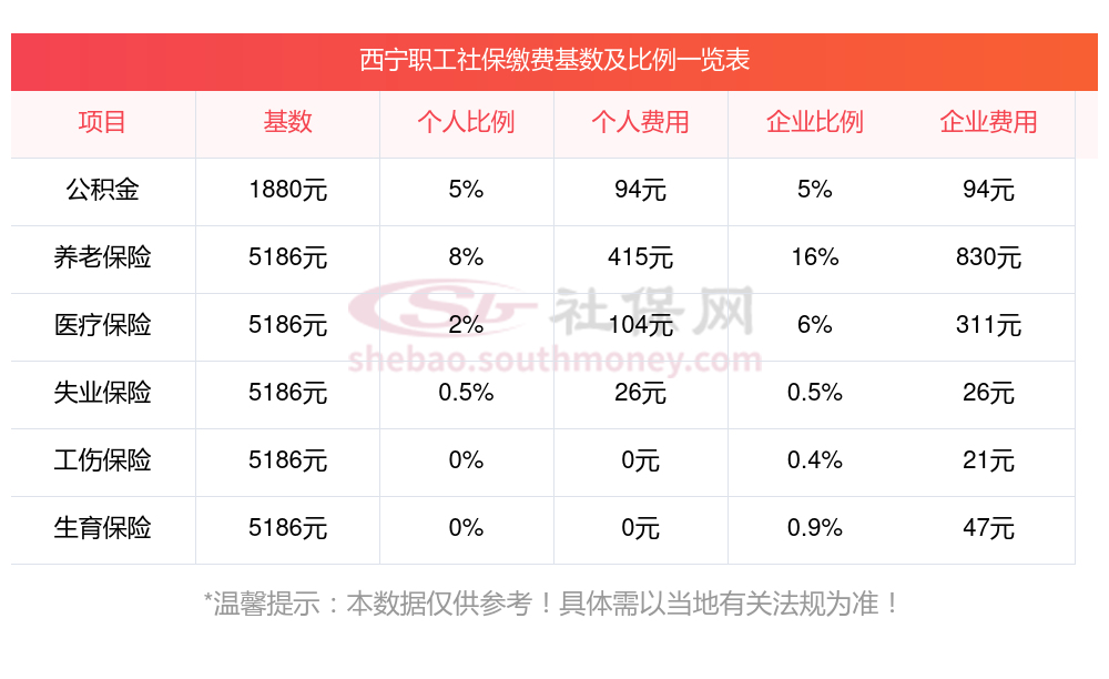 2025年西宁社保缴费多少钱?下表是2024-2025年西宁社保费用明细参考,新社通app-社保缴费查询工具提供的最新数据如下: