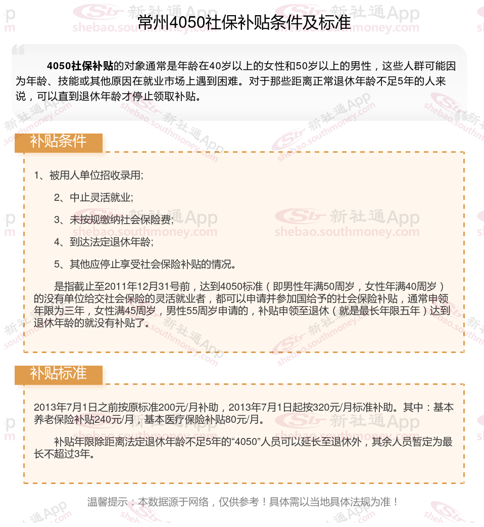 2025常州4050补贴主要针对的是年龄在40岁以上的女性和50岁以上的男性,这些人群通常因为年龄较大而面临就业困难。