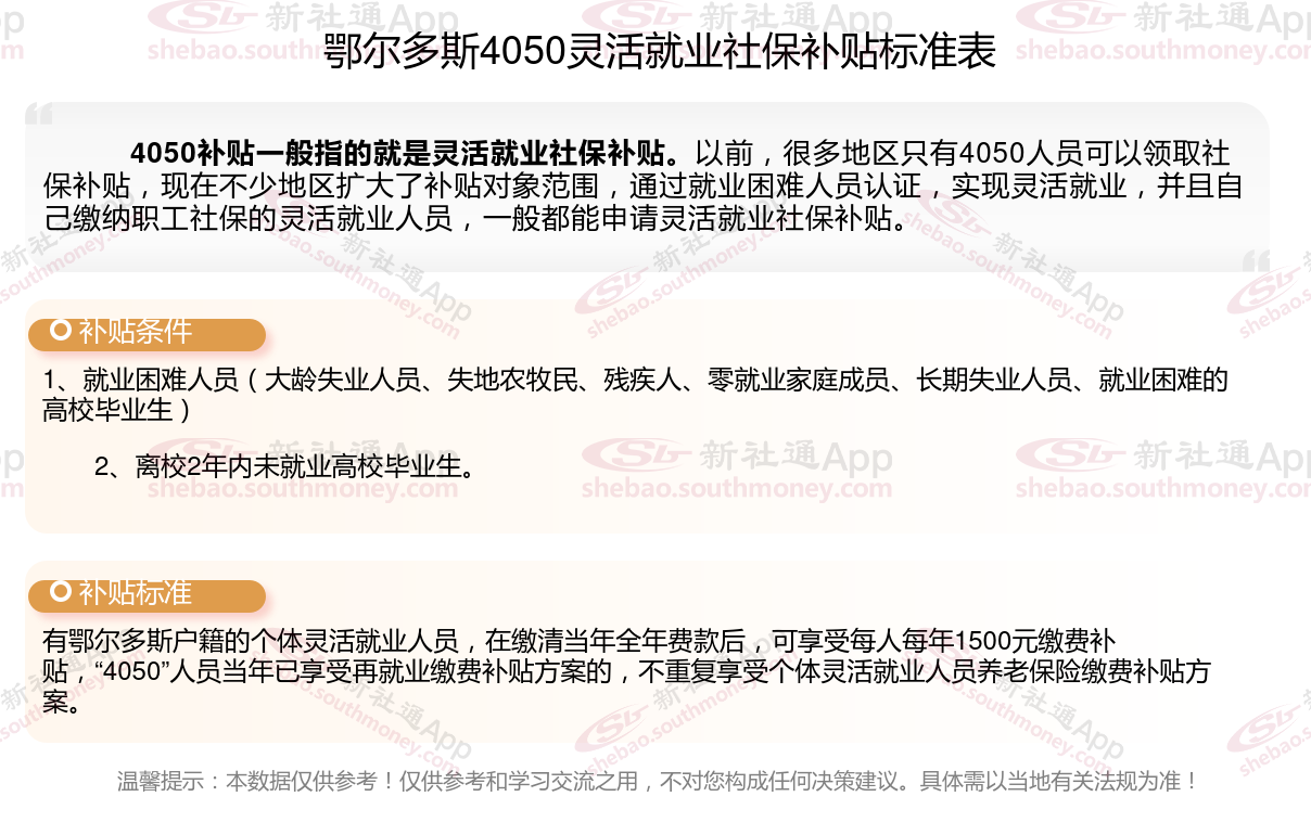 二、鄂尔多斯4050社保补贴标准及条件2023-2024年