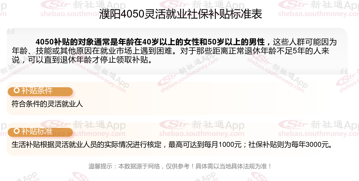2025濮阳4050补贴主要针对的是年龄在40岁以上的女性和50岁以上的男性,这些人群通常因为年龄较大而面临就业困难。