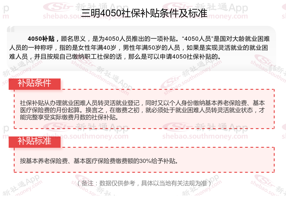 2025三明灵活就业4050社保补贴是一项面向特定年龄段的就业困难人群的社会保险补贴。
