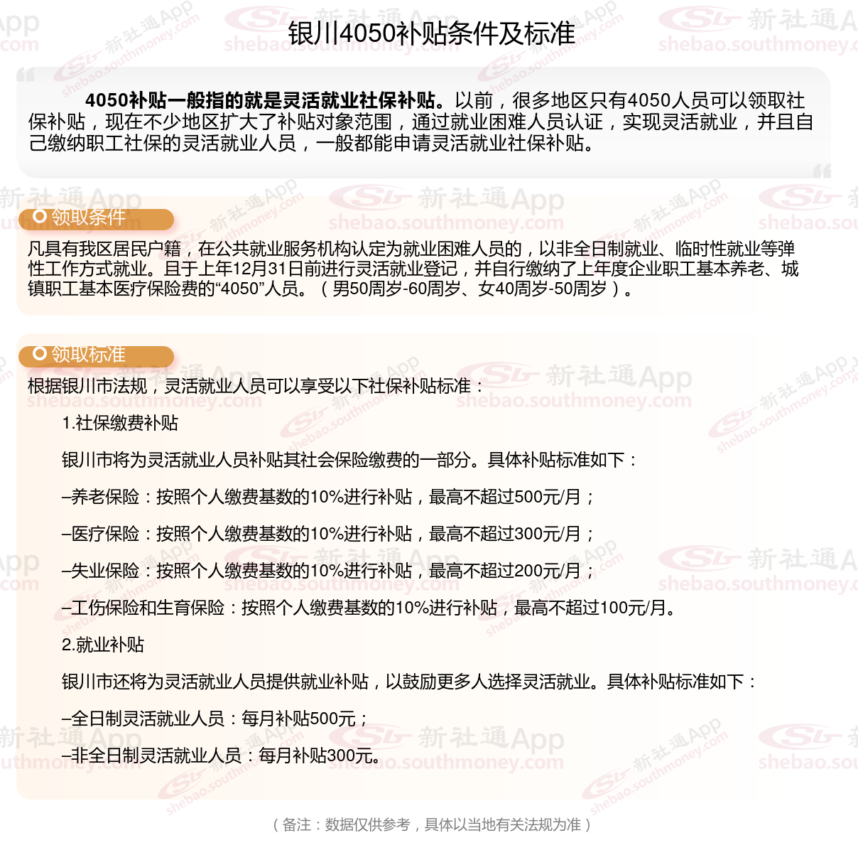 二、银川4050社保补贴标准及条件2023-2024年,最新如下