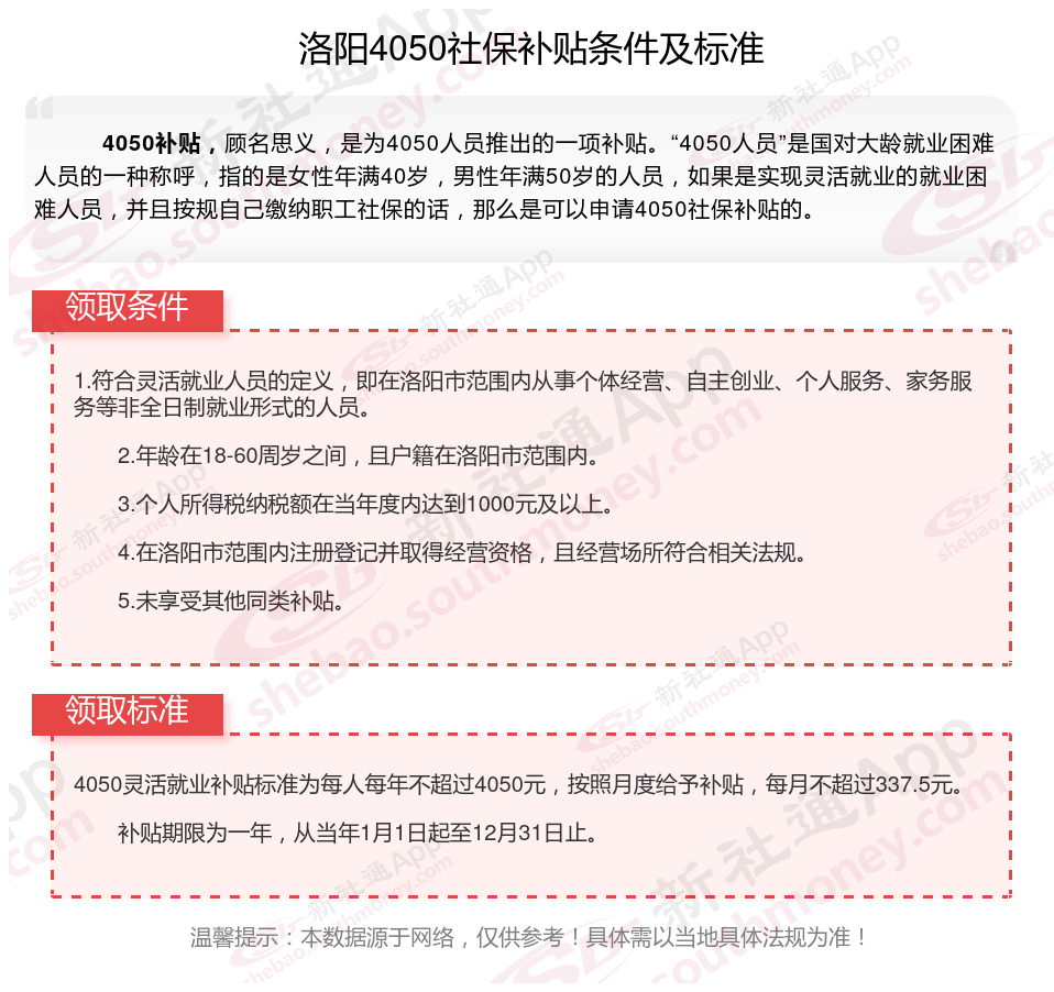 一、洛阳4050社保补贴标准及条件2023-2024年