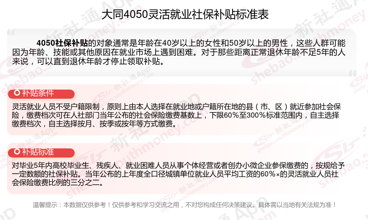 一、2023-2024年大同灵活就业4050社保补贴标准和条件是什么