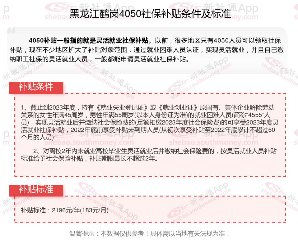 二、黑龙江鹤岗4050社保补贴标准及条件2025年最新消息