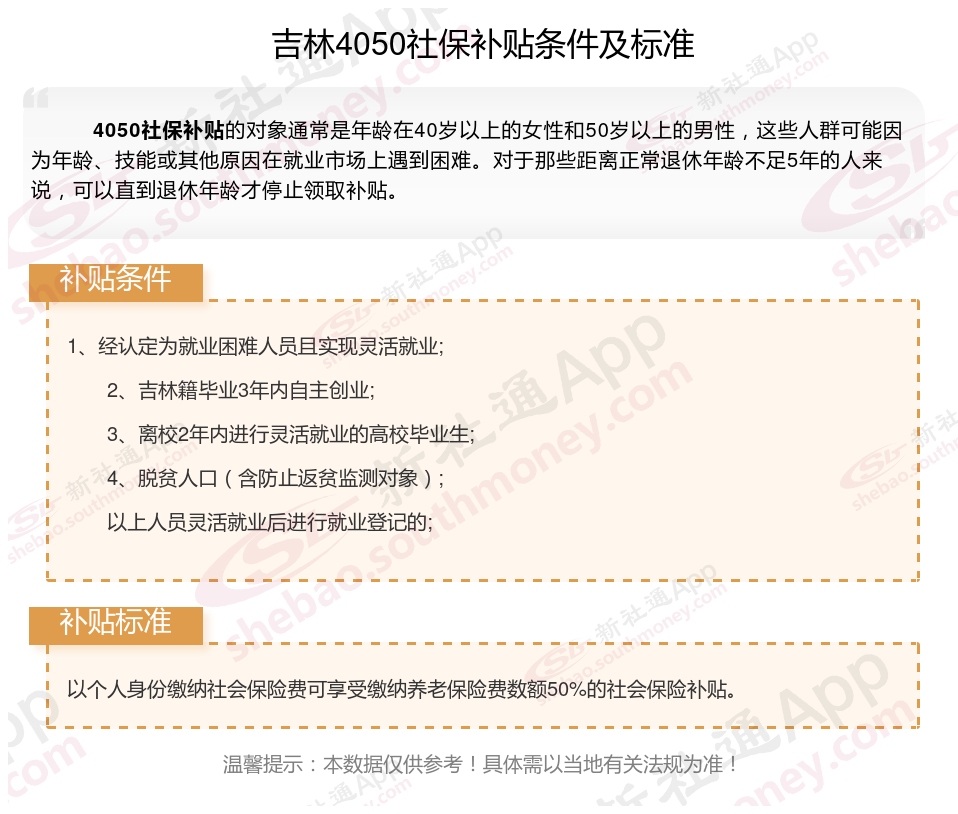 一、2025年吉林灵活就业4050社保补贴标准及条件是什么