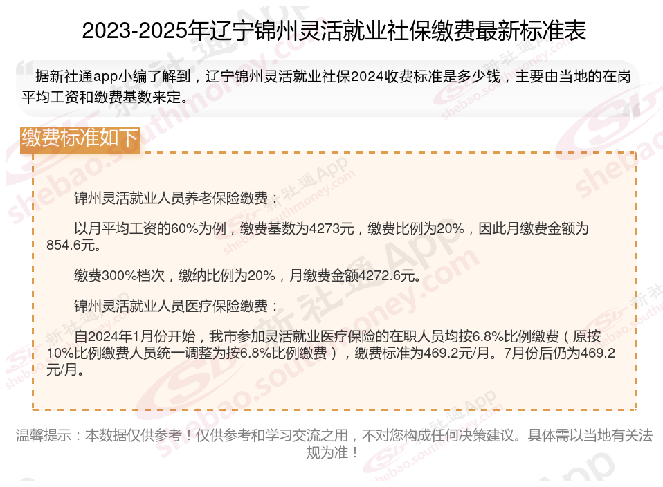 辽宁锦州灵活就业人员基本养老保险缴费基数暂按不低于4273元;