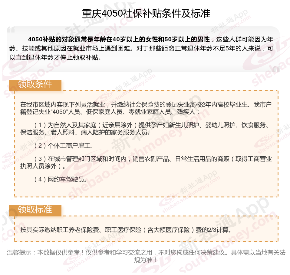 二、重庆4050社保补贴标准及条件(2025年最新)