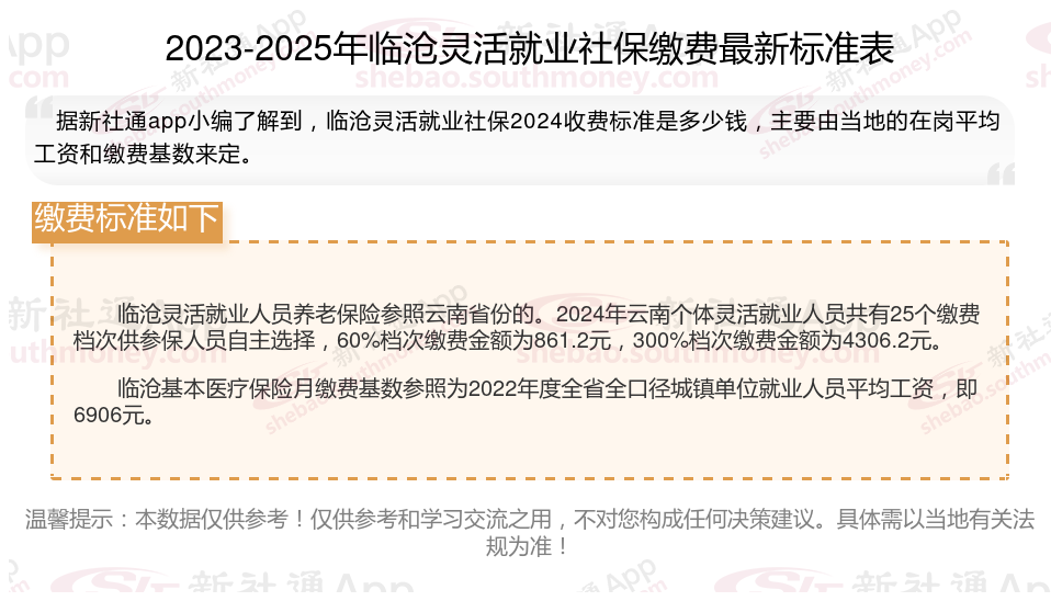 据新社通app数据显示,临沧灵活就业养老保险缴费基数2024-2025年最新标准如下: