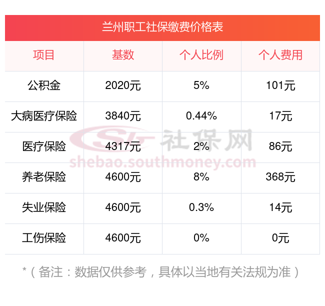 兰州缴费社保比例一览 社保公司和个人各交多少?下表是2024-2025年兰州社保费用明细参考,新社通app-社保缴费查询工具提供的最新数据如下: