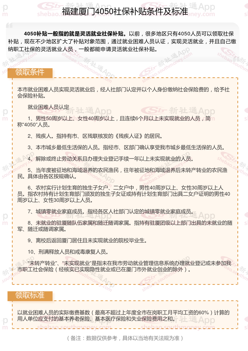 二、2025年福建厦门4050社保补贴标准,最新领取条件来了