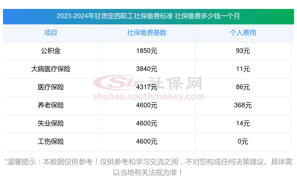 2025甘肃定西社保缴费标准一览表?新社通app-社保缴费查询工具提供的最新数据如下: