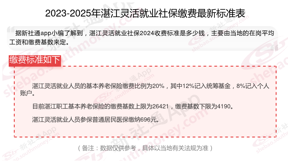那么,湛江灵活就业人员社保缴费标准2024-2025最新来了,交社保有什么好处?根据新社通app-社保缴费查询工具提供的2025社保缴费标准详情数据: