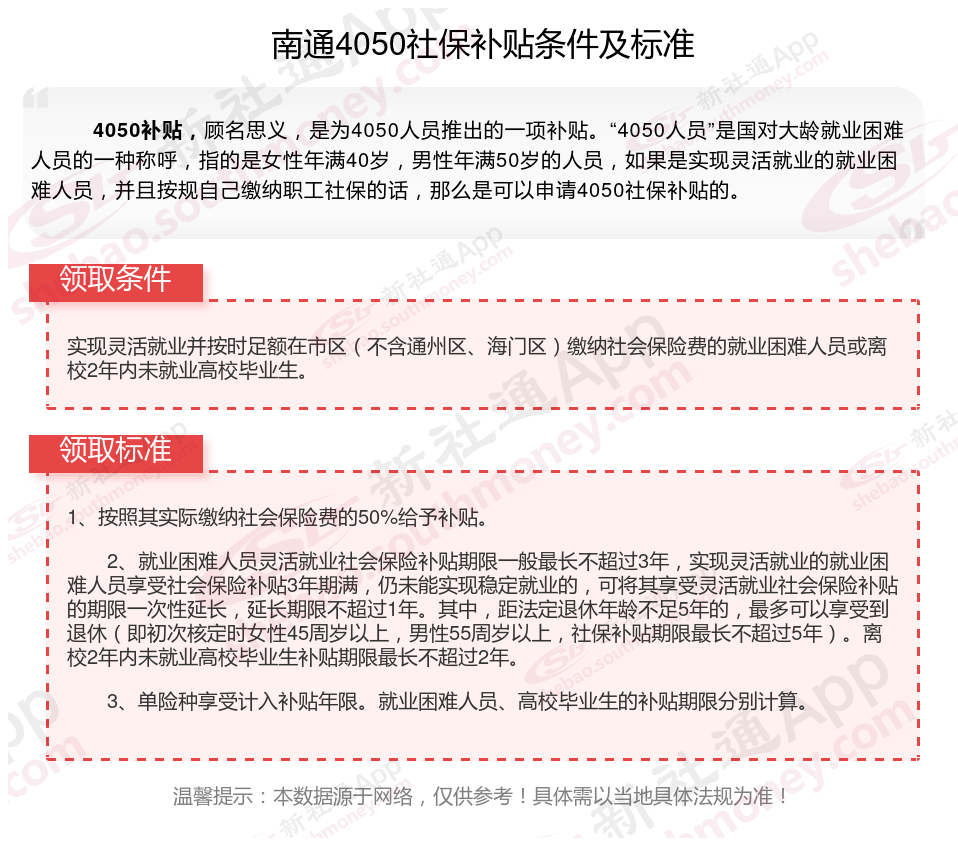 二、2025年南通灵活就业4050社保补贴标准及条件是什么?来了解一下