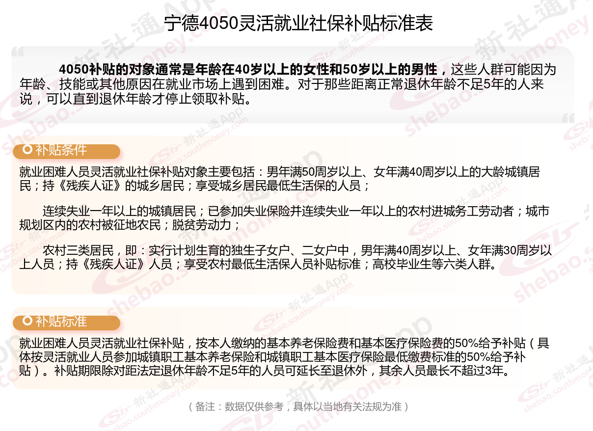 一、2025年宁德4050社保补贴标准,最新领取条件来了