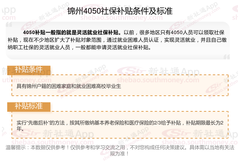 二、锦州4050社保补贴标准及条件(2025年最新)