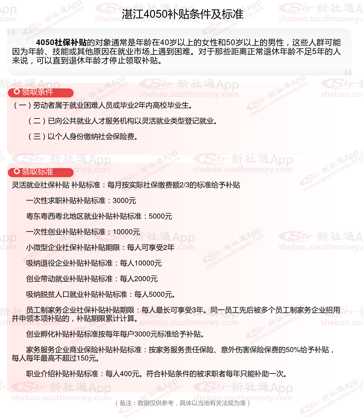 一、湛江4050社保补贴标准及条件2025年最新消息