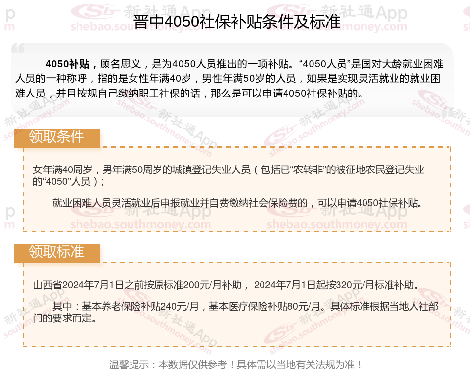 一、2025年晋中4050社保补贴标准,最新领取条件来了