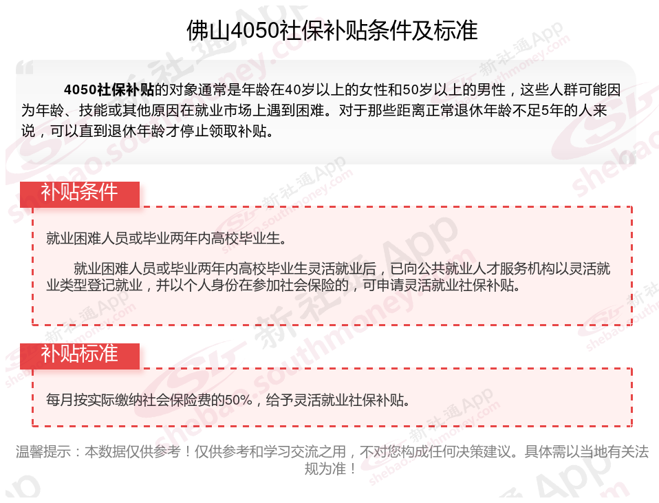 二、佛山4050社保补贴标准及条件2025年最新消息
