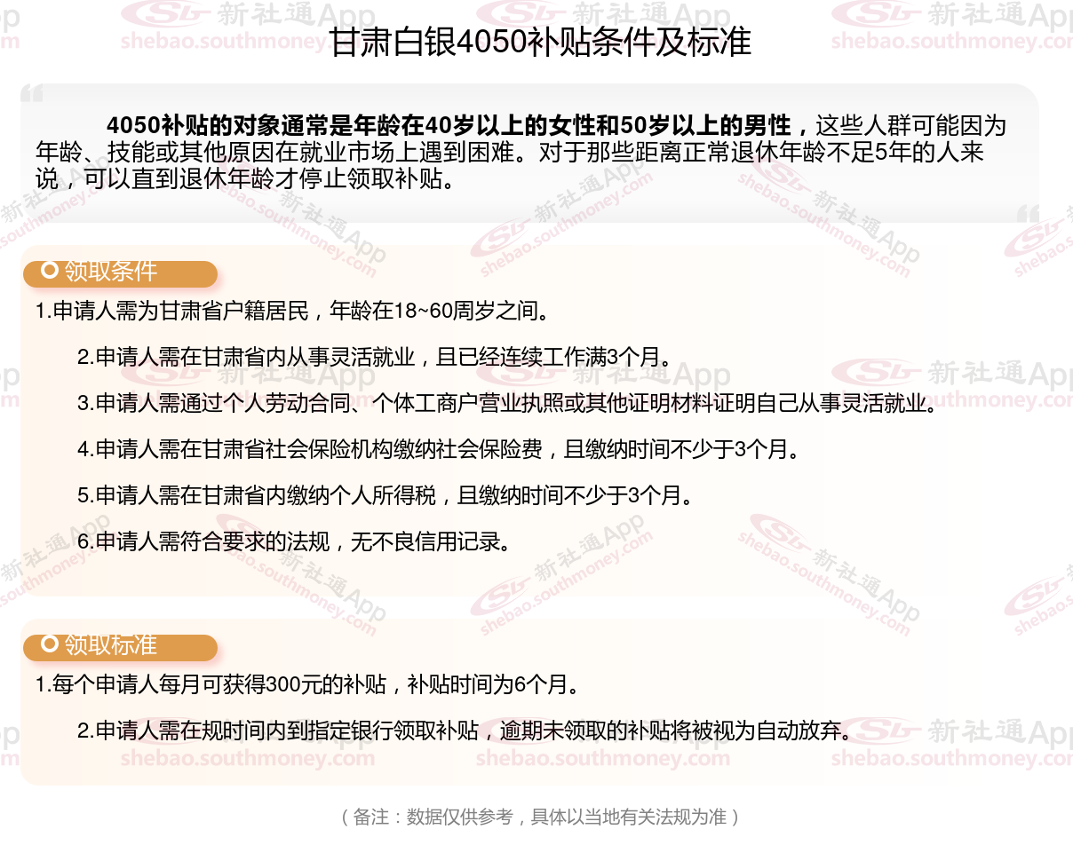 一、2025年甘肃白银4050社保补贴标准是怎么样的?甘肃白银4050一年可拿多少钱?