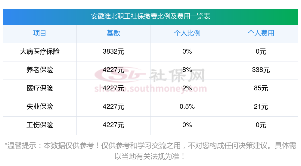 2025年安徽淮北社保缴费多少钱?下表是2024-2025年安徽淮北社保费用明细参考,新社通app-社保缴费查询工具提供的最新数据如下: