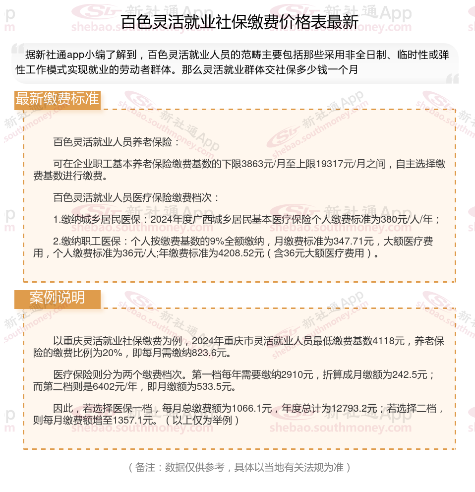 据新社通app数据显示,百色养老保险缴费基数2024-2025年最新标准如下: