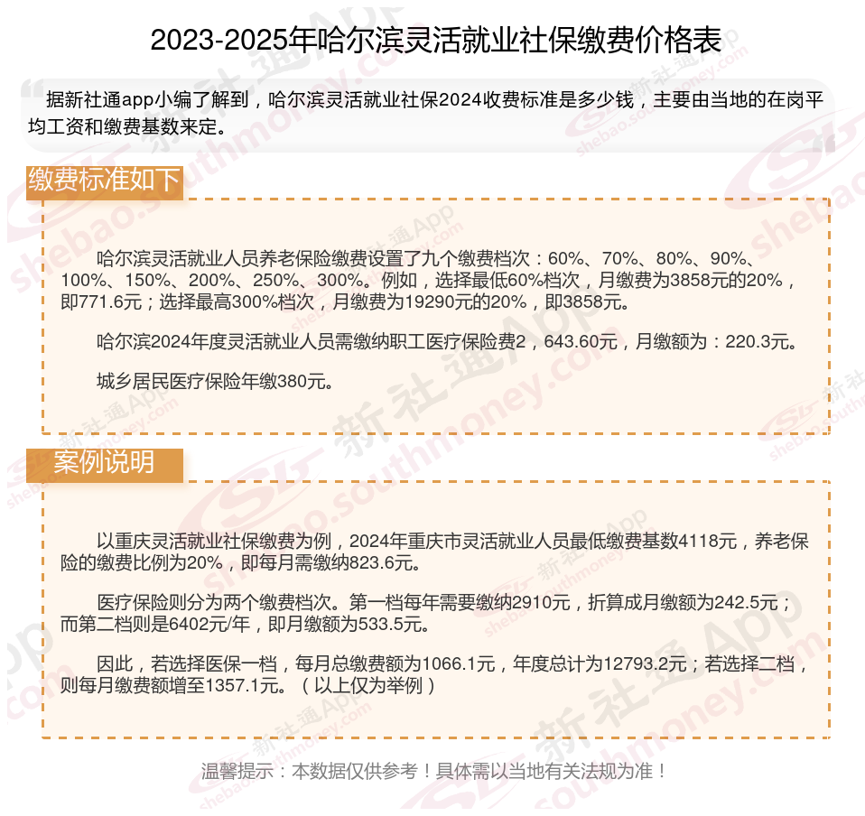 一、2024年哈尔滨灵活就业社保缴费标准表哈尔滨灵活就业社保多少钱一个月?