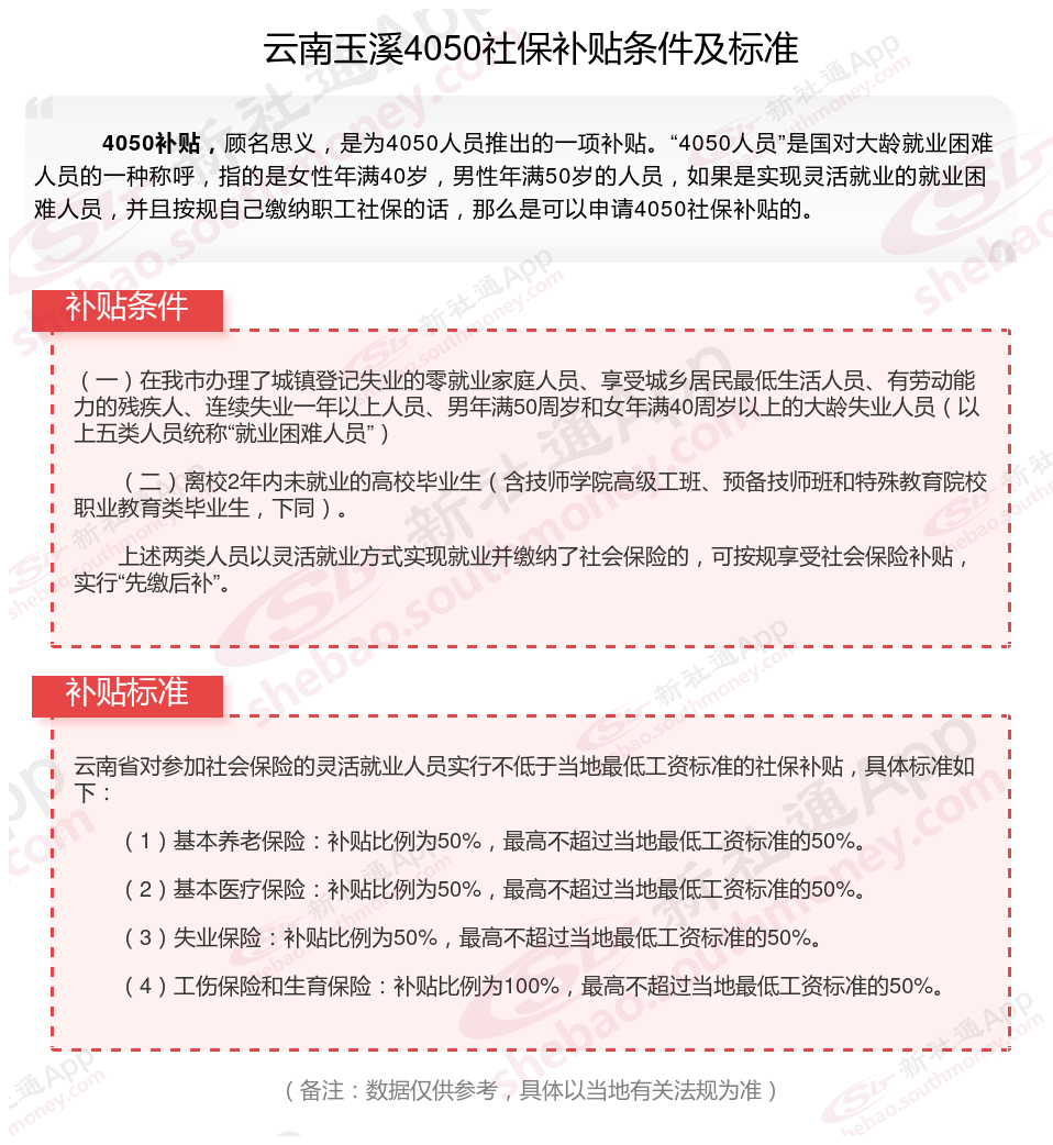 一、2025年云南玉溪灵活就业4050社保补贴标准和条件是什么