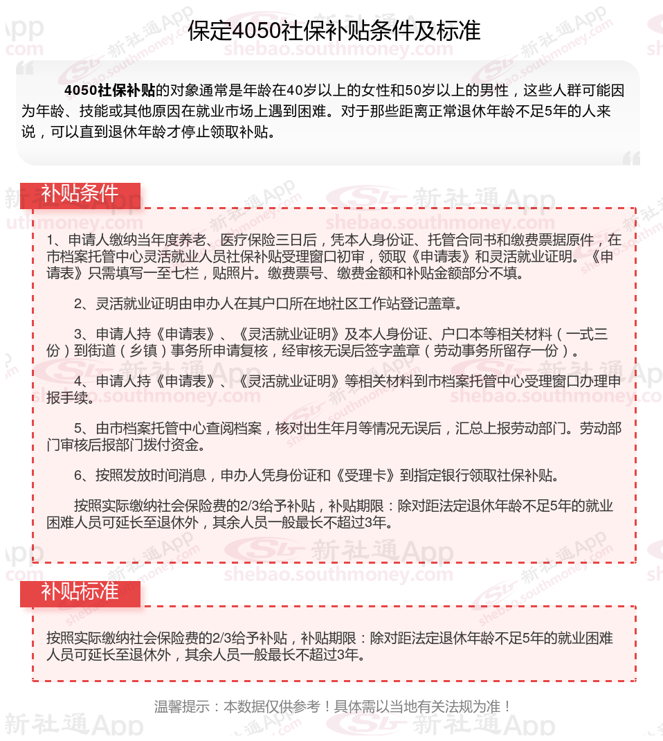 一、2025年保定4050社保补贴标准是怎么样的,附领取条件