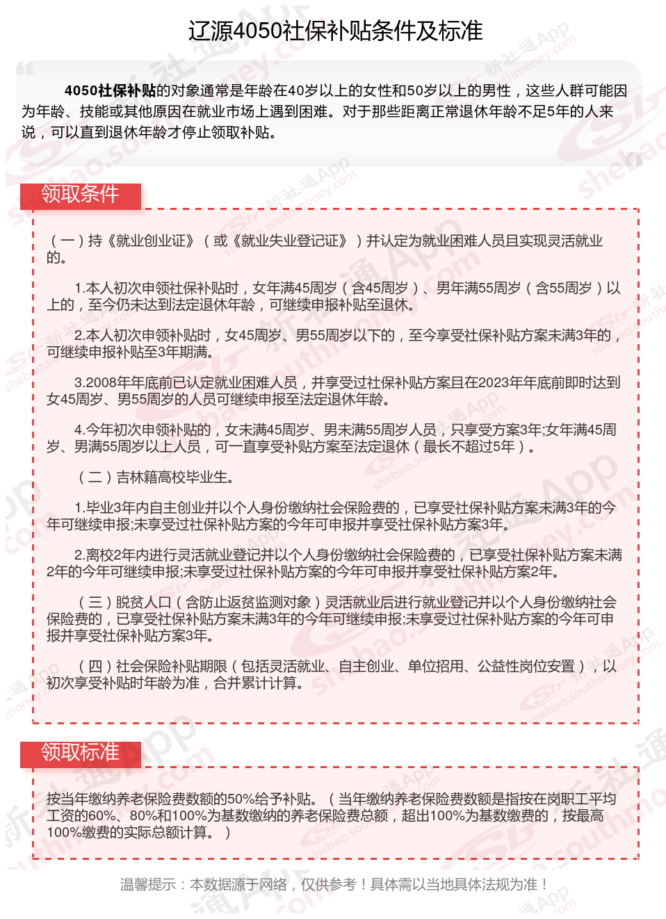 一、辽源灵活就业4050社保补贴标准和条件是什么?