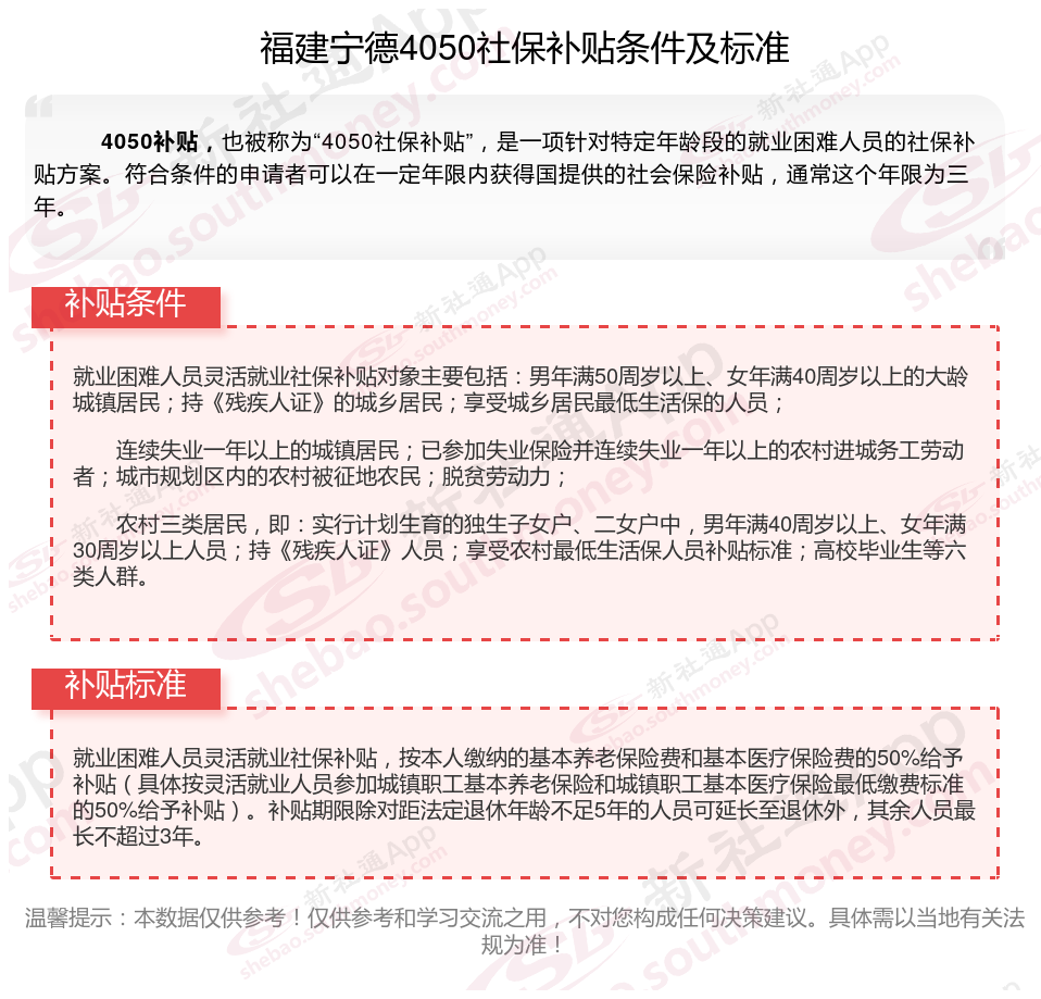 一、2023-2024年福建宁德4050社保补贴标准及条件是多少?