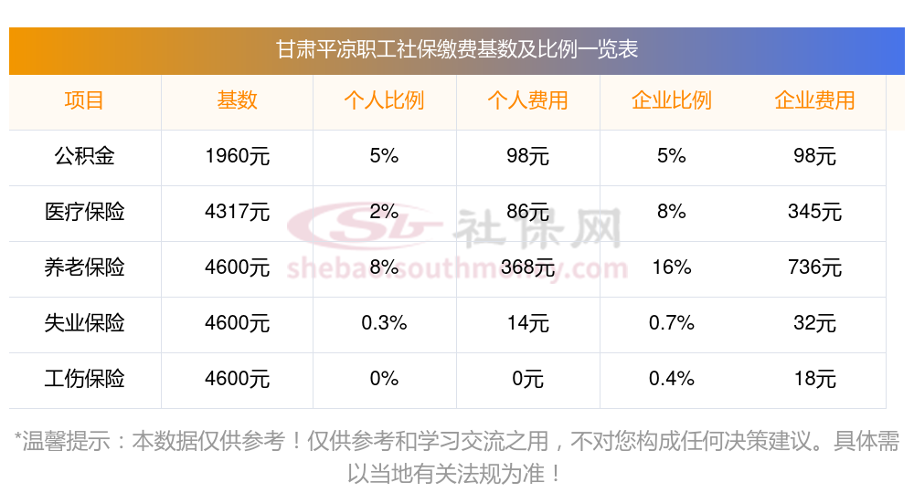 根据新社通app-社保缴费查询工具提供的最新数据, 甘肃平凉社保缴费比例社保缴费比例包括以下几个部分: