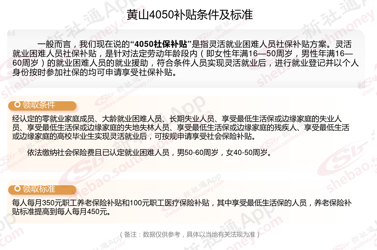 一、2023-2024年黄山4050社保补贴标准及条件,最新如下