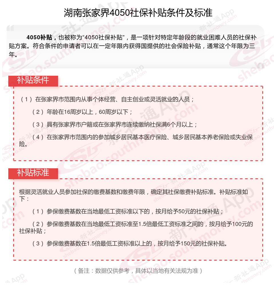 一、湖南张家界4050社保补贴标准是什么?附条件