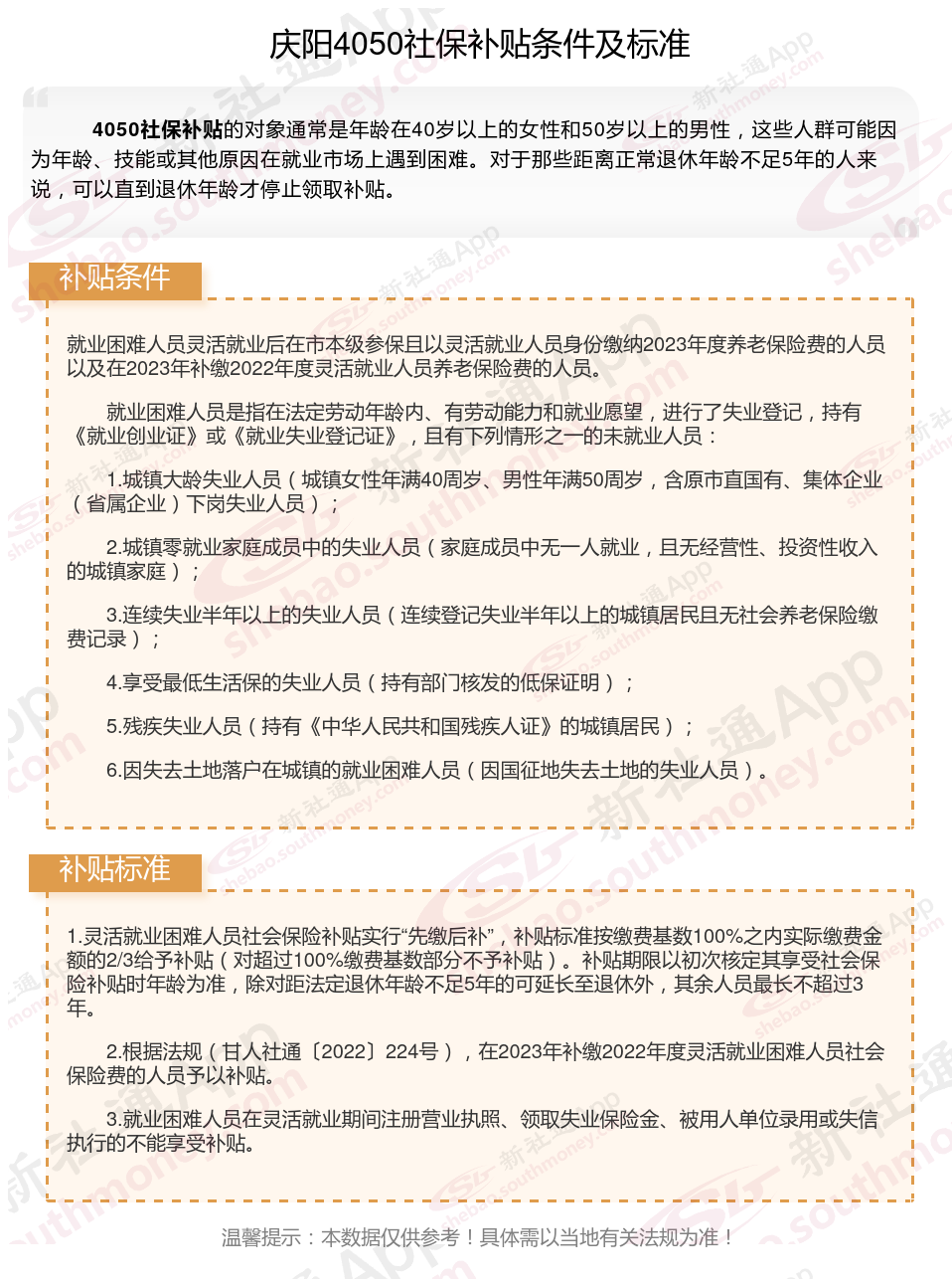 一、2023-2024年庆阳4050社保补贴标准及条件是多少?