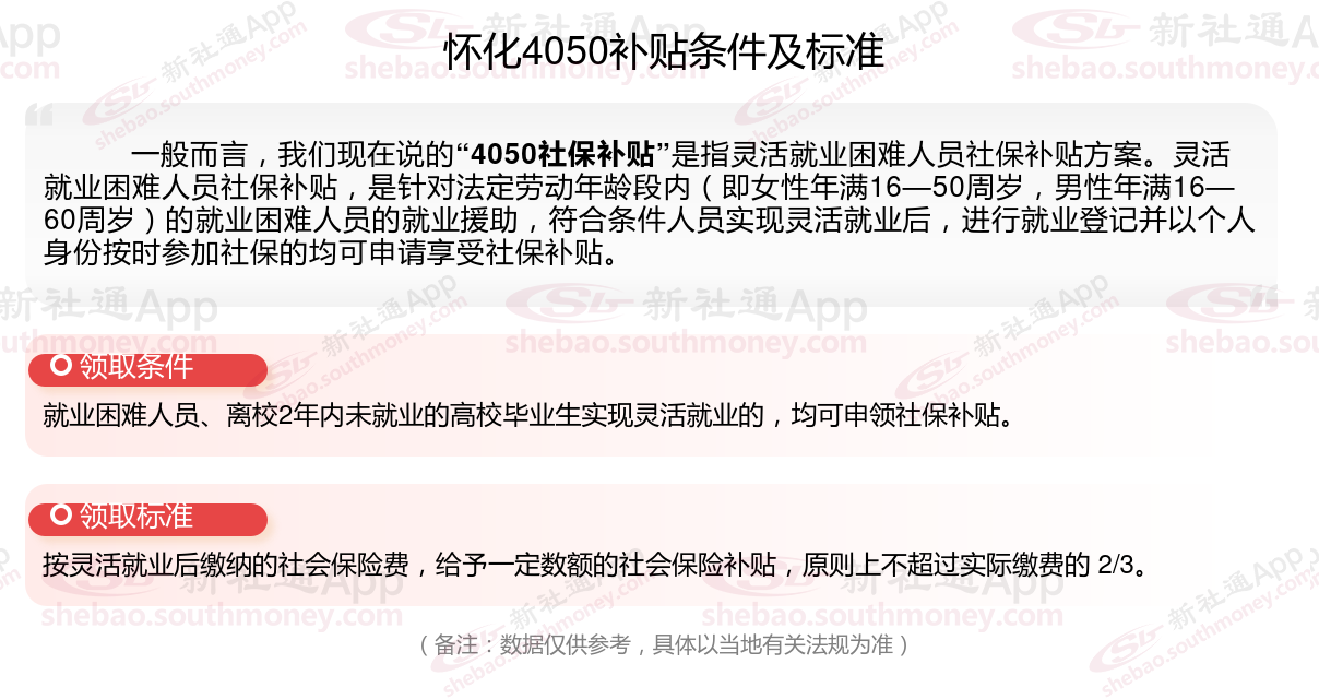 二、2025年怀化灵活就业4050社保补贴标准及条件是什么?来了解一下