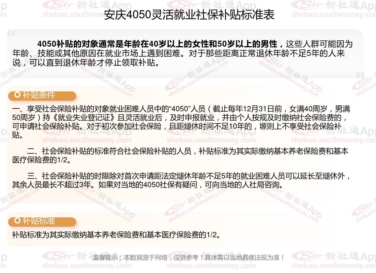 二、安庆灵活就业4050社保补贴标准2025年(4050社保条件是什么)