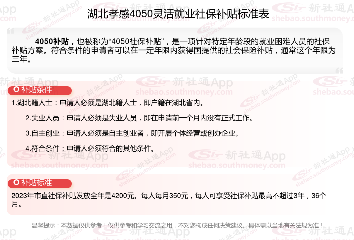 一、2025年湖北孝感4050社保补贴标准是怎么样的?湖北孝感4050一年可拿多少钱?
