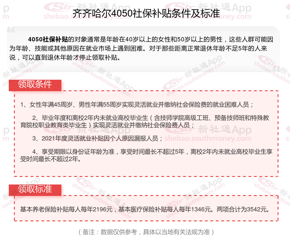 二、2025年齐齐哈尔4050社保补贴多少钱?4050社保补贴领取条件什么?