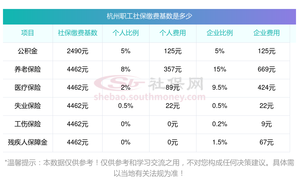 2025年杭州五险缴费标准是多少,2025年杭州社保缴费多少钱?下表是2025年杭州社保费用明细参考,新社通app-社保缴费查询工具提供的最新数据如下: