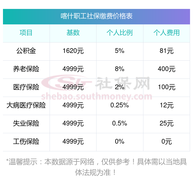 企业给员工交社保交多少钱一个月??喀什五险一般扣多少钱??新社通app缴费查询工具提供的最新数据如下: