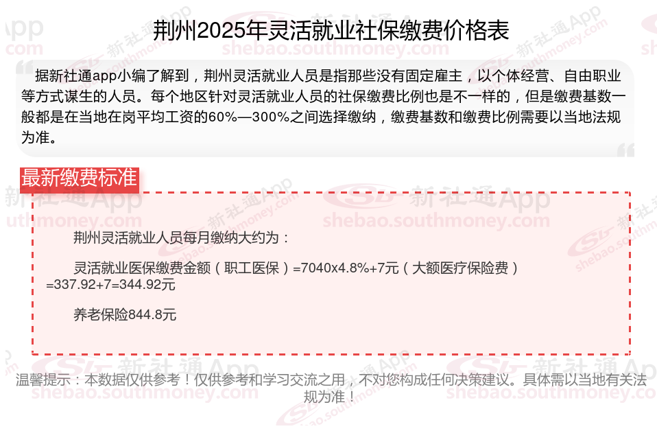 二、荆州2025年灵活就业社保缴费基数及比例最新消息