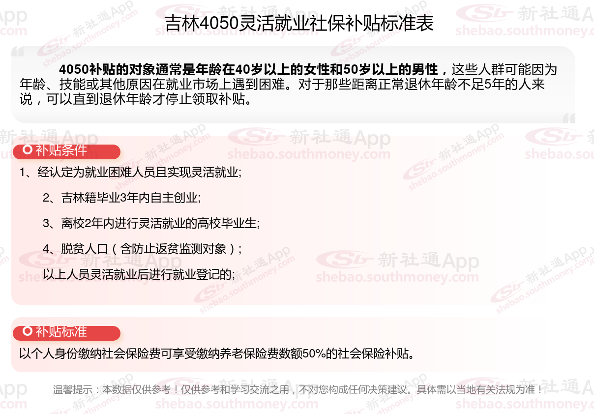 一、2025年吉林灵活就业4050社保补贴标准最新是多少?